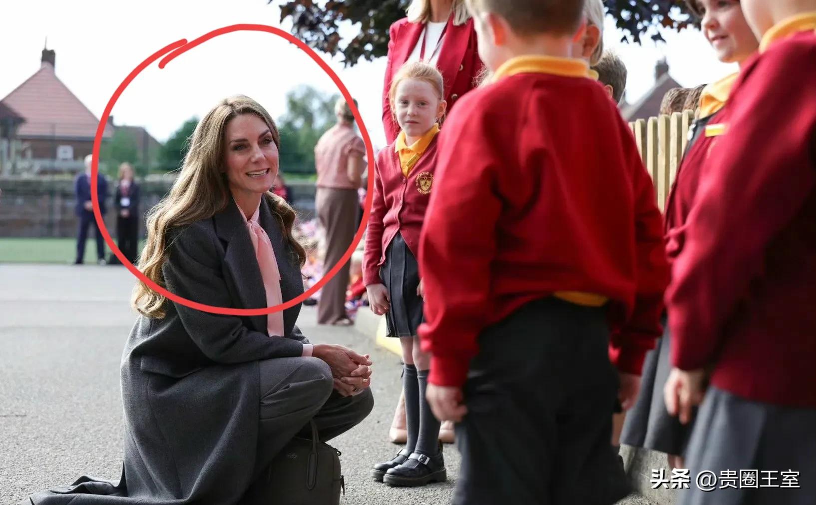 在访问期间,凯特王妃暖心问候幼儿园的小朋友们,她蹲下身子,放下手提包,顾不上衣服拖落在地,非常自然的动作,就能看出凯特王妃爱心满满。