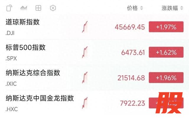 盘面上,美股三大股指早盘大幅拉升,截至发稿,道指、纳指涨近2%,标普500指数涨超1.5%,纳斯达克中国金龙指数涨超2.5%。